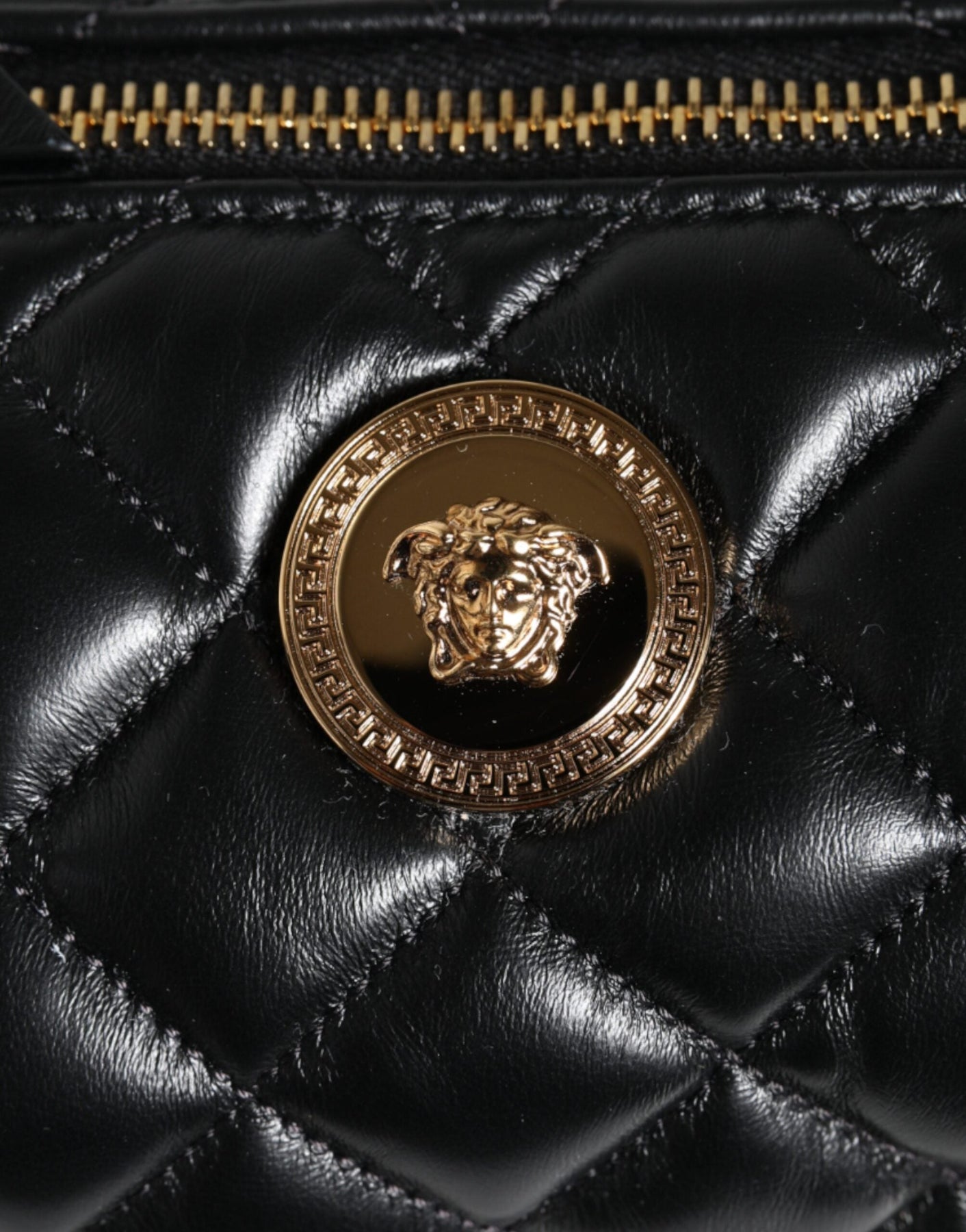 Versace Black Mini Quilted Lambskin Leather Crossbody Sling Borse Bag