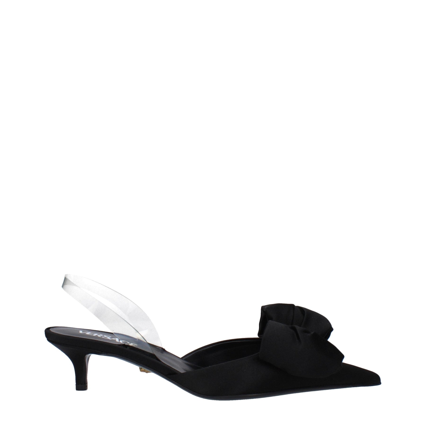 The product with MPN 10154241A084151B00V and code F82956 satin in black is a sandals designed by Versace. It has features like front detail.